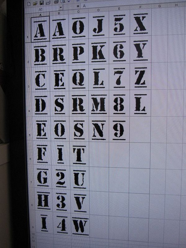 まずは格安の(105円)クリアーファイルとスプレーのりを用意し、パソコンにステンシルフォントを入れて、好きな字を並べます。