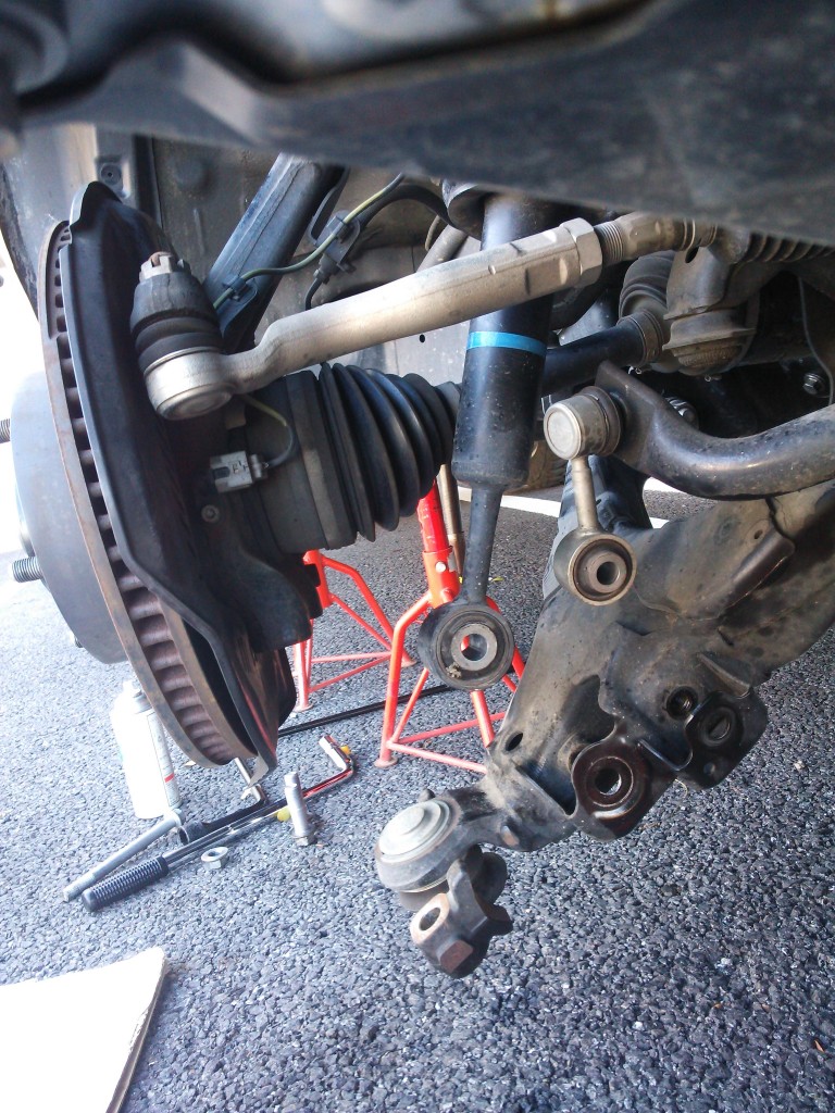 仕方なく、スタビ、ロアアーム・・・・ボルトというボルト全て外して、ロアアームごと外すことにします!
