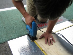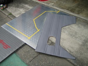 おっ外した内貼りで型取りをして、ジクソーでカット。