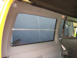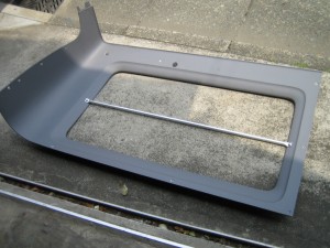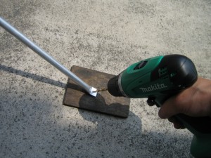 続いて、端を潰したパイプと一番後ろの窓枠に穴を開けて