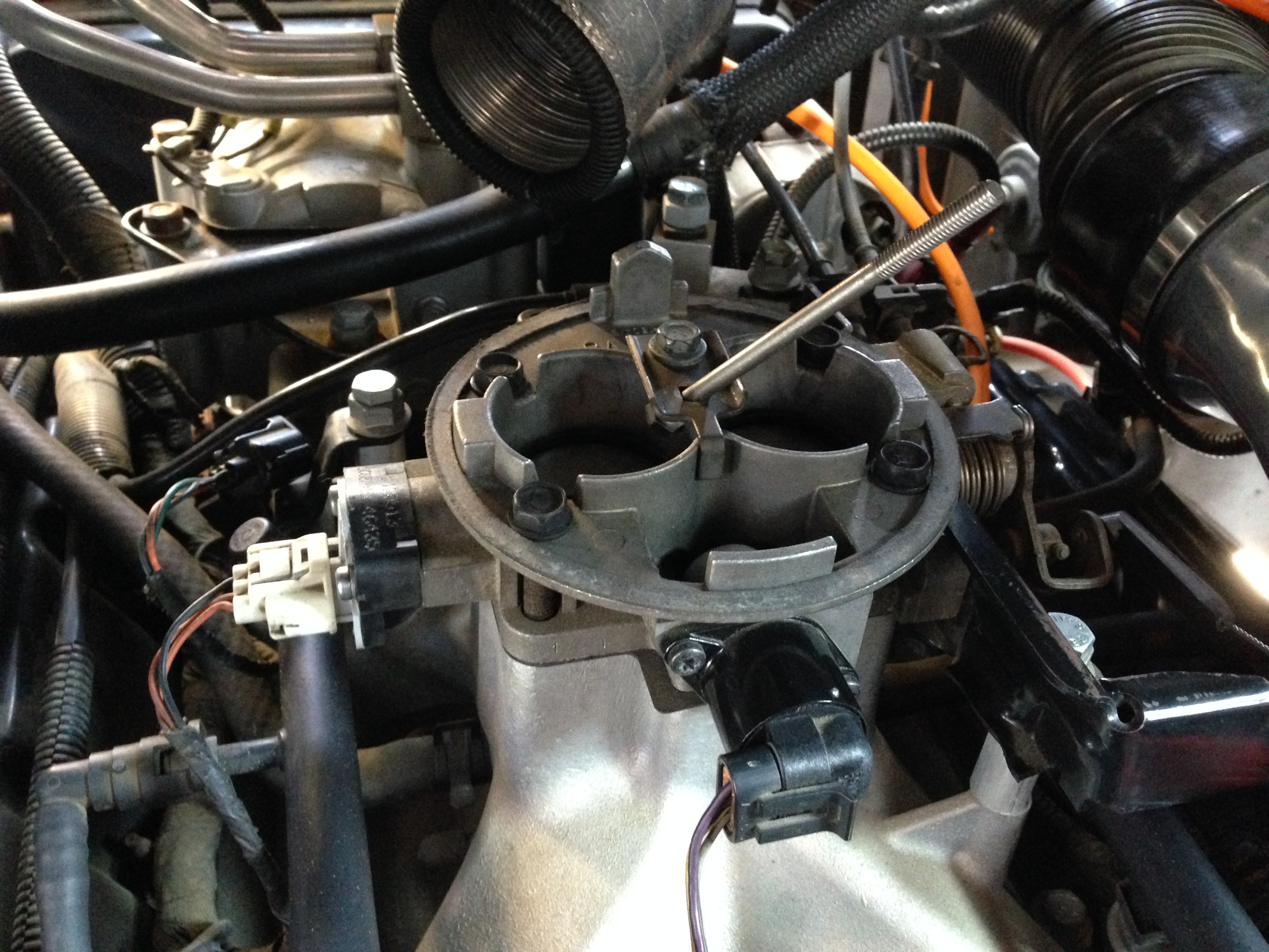 スロットルボディの12時の位置に付いてます。