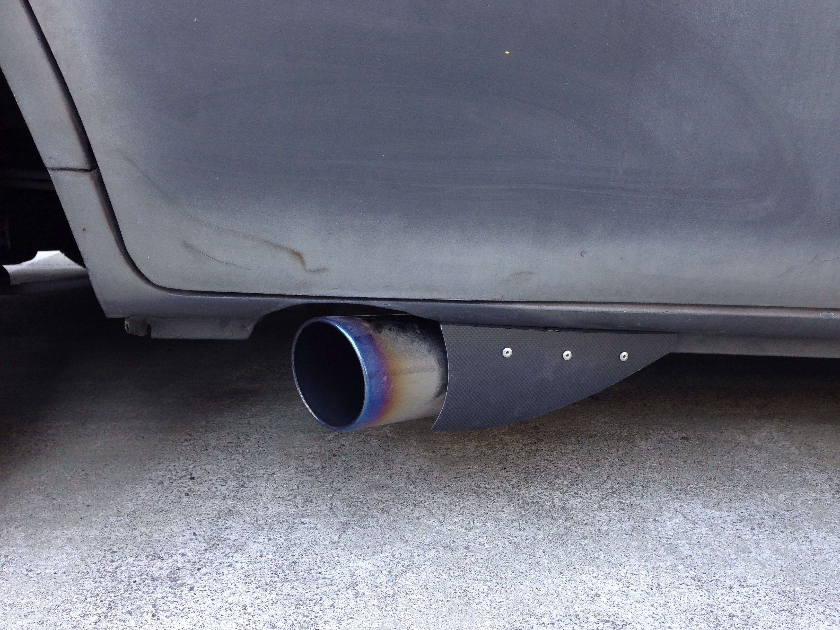 ローダウンしたリヤバンパーの切り欠きもきっちり処理済。